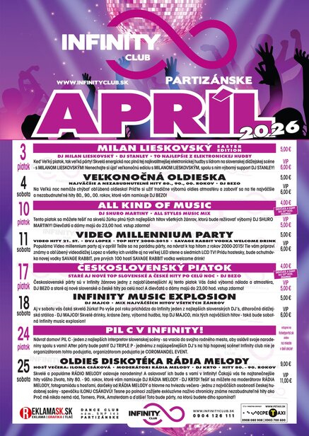 Populárna Video millennium party aj v apríli! Tešte sa na parádnu párty, na návrat k top hitom z rokov 2000-2015! Tie vám pripraví známy a obľúbený videodídžej Lopez a všetky ich uvidíte aj na veľkej LED stene a siedmich LCD TV! Prídu hostesky, bude ochutnávka novej vodky SAVAGE RABBIT, pre prvých 100 hostí SAVAGE RABBIT vodka welcome drink!